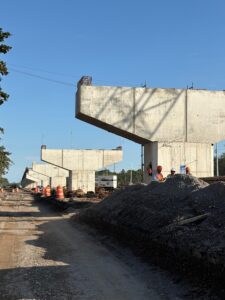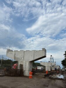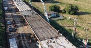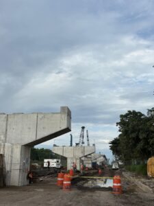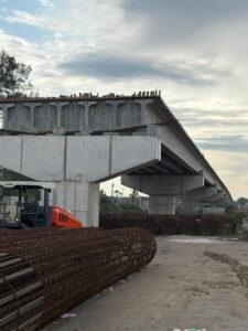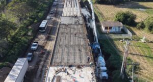 - Continúa el montaje de trabes, la colocación de cimbra y el armado del acero de refuerzo para losas y diafragmas