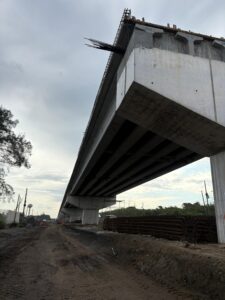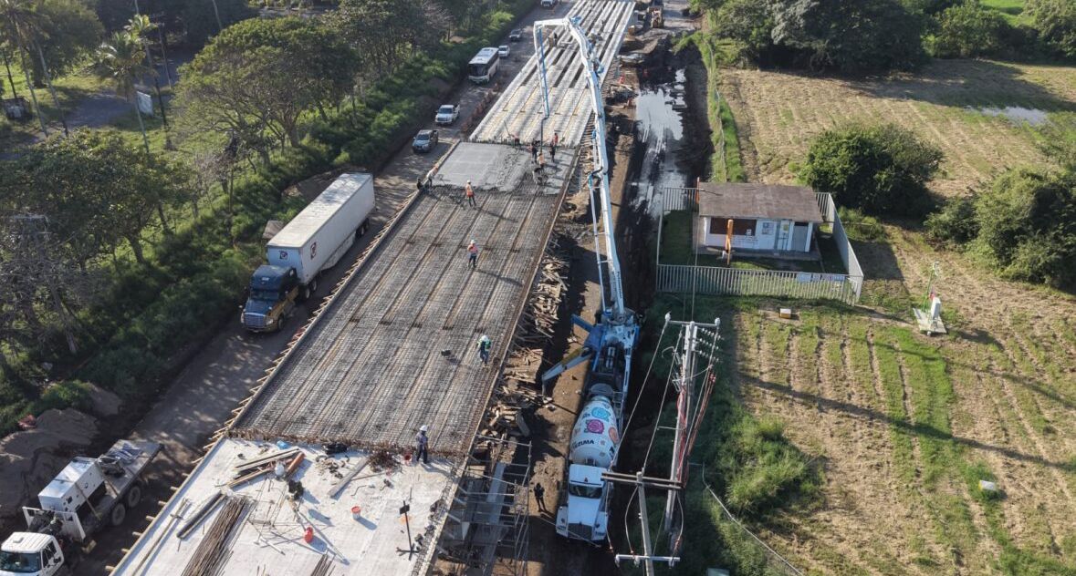 En cuanto al avance de los trabajos, en el cuerpo B (sentido Veracruz–Xalapa) continúa la construcción y montaje de trabes, la colocación de cimbra y el armado del acero de refuerzo para losas y diafragmas.