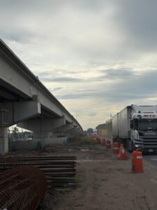 Por su parte, en el cuerpo A (sentido Xalapa–Veracruz) continúa el armado de pilotes, etapa clave para el desarrollo estructural del distribuidor vial.