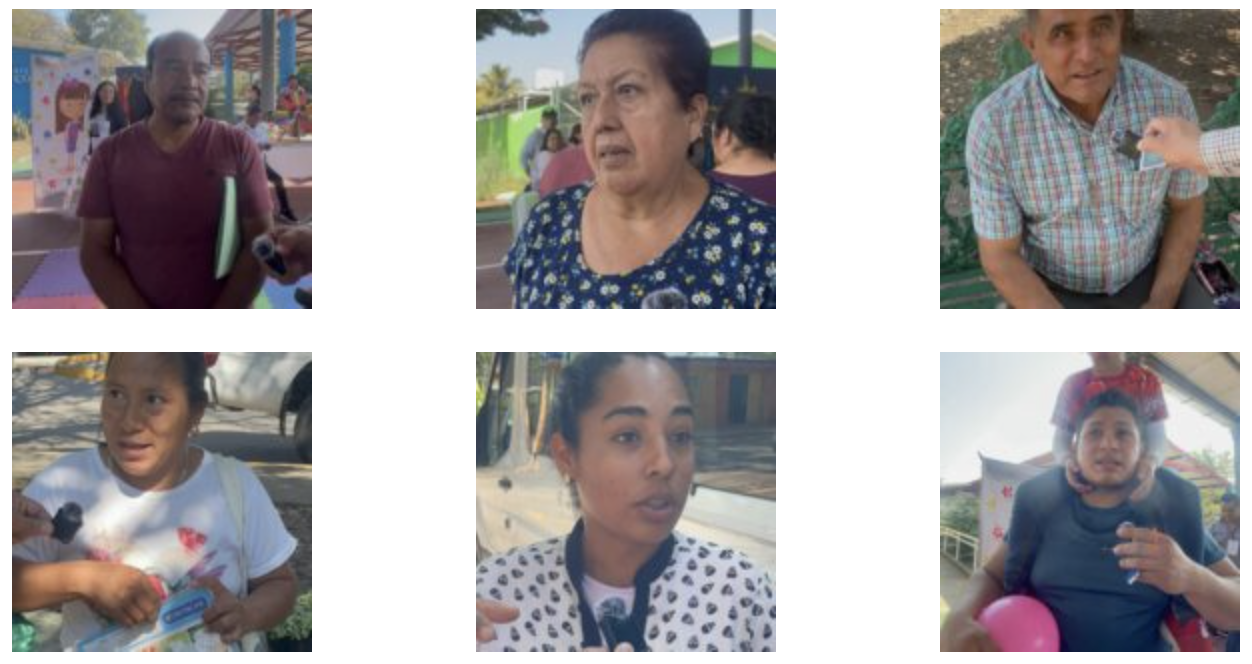 “Estamos seguros que viene un buen proyecto con ella. Qué bueno que nos tomen en cuenta. Recursos llegan para allá, para allá, a la Congregación 6 de enero, pero a nosotros no nos toman en cuenta. Hay personas que necesitan techados. Hay personas que ya tienen y les llegan más. Hoy agradezco que mis hijas se hayan divertido con los talleres. Muchas gracias por venir a nuestro pueblo, presidenta”.