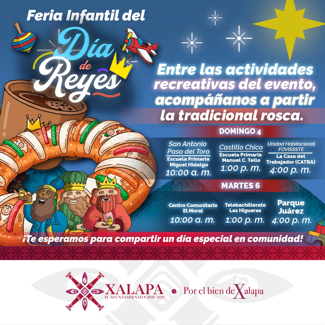 La presidezta municipal de Xalapa, recordó que esta de San Antonio Paso del Toro es la primera «Feria Infantil” por el Día de Reyes. Este mismo domingo 04 de enero se llevarán a cabo otra en la Escuela Primaria “Manuel C. Tello” de Castillo Chico y una más en La Casa del Trabajador (CATRA), en la Unidad Habitacional del FOVISSSTE, en Xalapa.