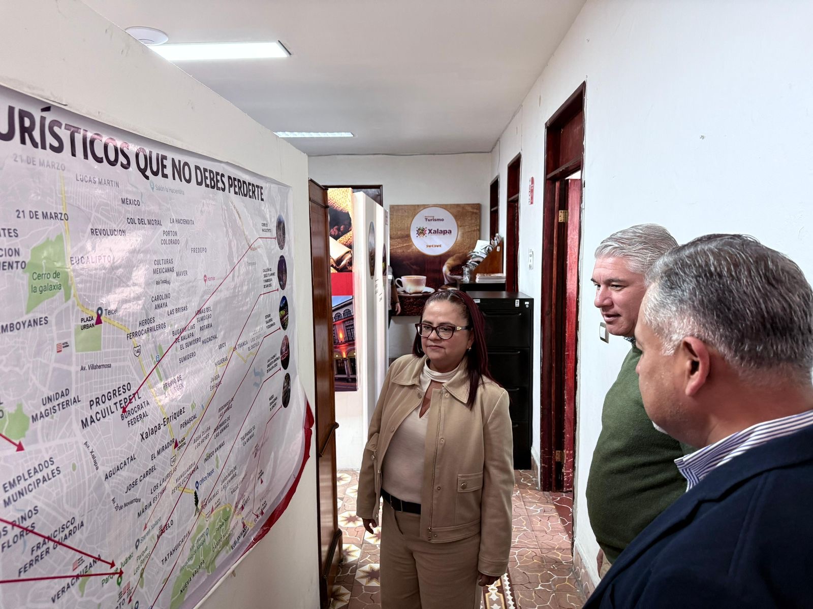 Acompañada del Síndico Único, Dr. Marco Aurelio Martínez Sánchez, inició el recorrió en las instalaciones de la Dirección de Turismo, a cargo del Lic. Eduardo Blanco Guillaumín.