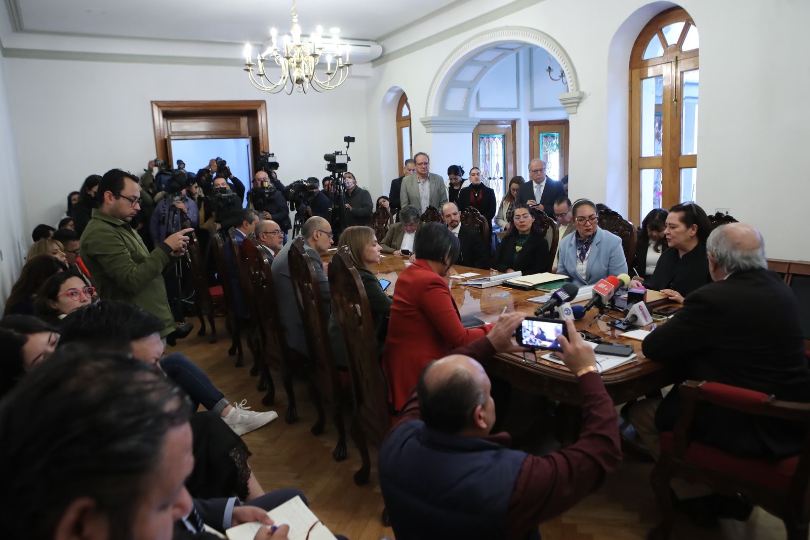 La delegación del INE estuvo encabezada por la Consejera Presidenta, Guadalupe Taddei Zavala, las consejeras y los consejeros electorales Norma De La Cruz Magaña, Carla Humphrey Jordan, Rita Bell López Vences, Arturo Castillo Loza, Uuc-kib Espadas Ancona, Martín Faz Mora, Jorge Montaño Ventura y Jaime Rivera Velázquez. Asistió también la Secretaria Ejecutiva, Claudia Arlett Espino, quien certificó la entrega del documento, que será subido a la página del INE.