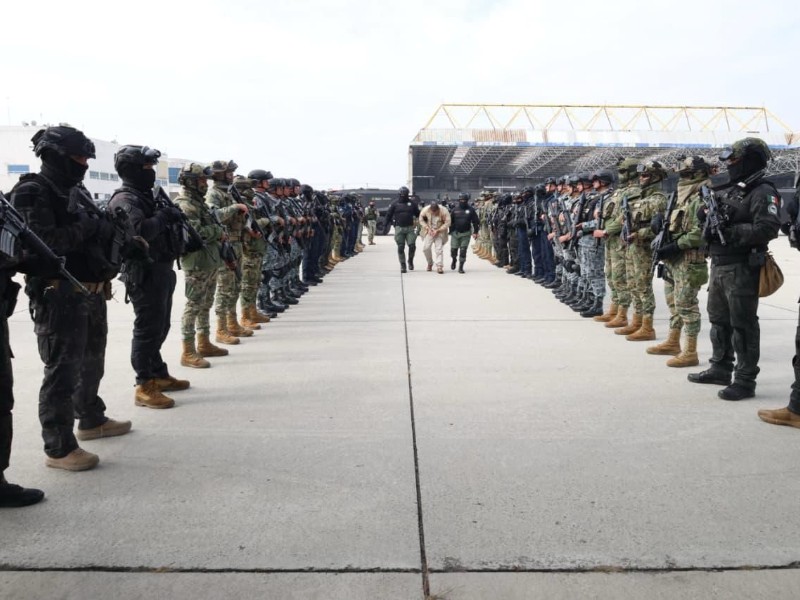 A bordo de siete aeronaves de las Fuerzas Armadas, el Gobierno de México trasladó esta mañana a 37 operadores de organizaciones criminales hacia Estados Unidos, tras ser considerados una amenaza real para la seguridad nacional.