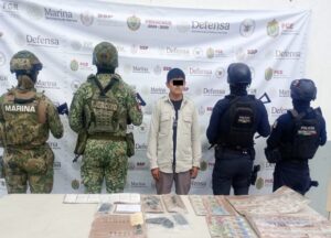También una granada, dos armas de fuego cortas, una de ellas hechiza, cargadores y cartuchos útiles; teléfonos móviles, máquinas de costura, chalecos pixeleados y negros, mochilas y botas tácticas; así como un automóvil, una camioneta y un vehículo sin reporte de robo.