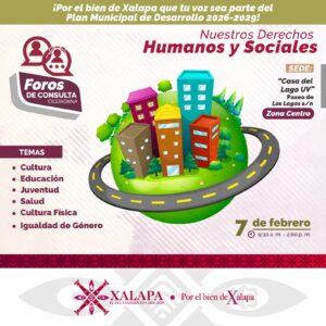 Xalapa, Ver., 3 de febrero de 2026.- Con el propósito de contar con un Plan Municipal de Desarrollo (PMD) que atienda las principales necesidades de la población y considere las propuestas de la sociedad, el próximo sábado 7 de febrero inician los foros de consulta para la elaboración del PMD 2026-2029.