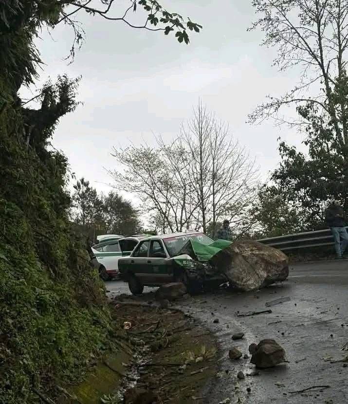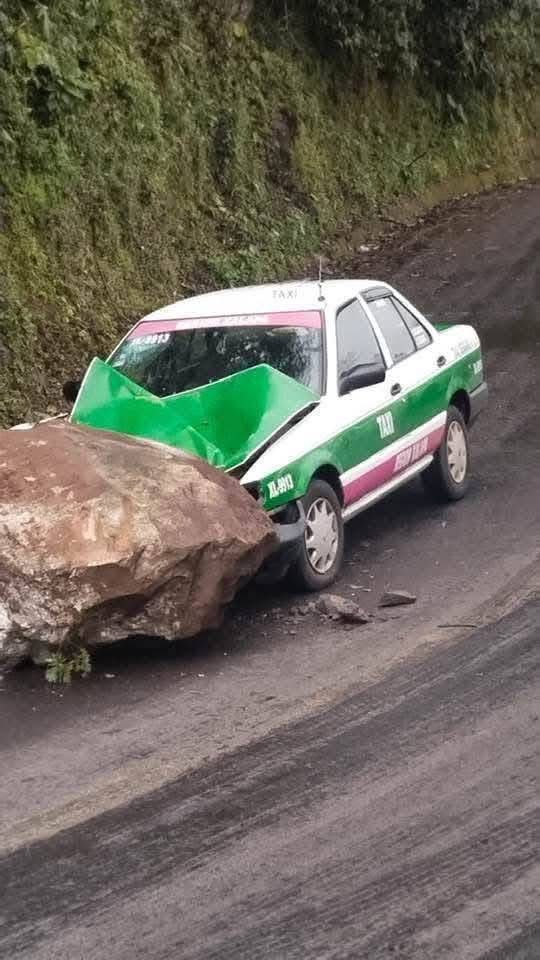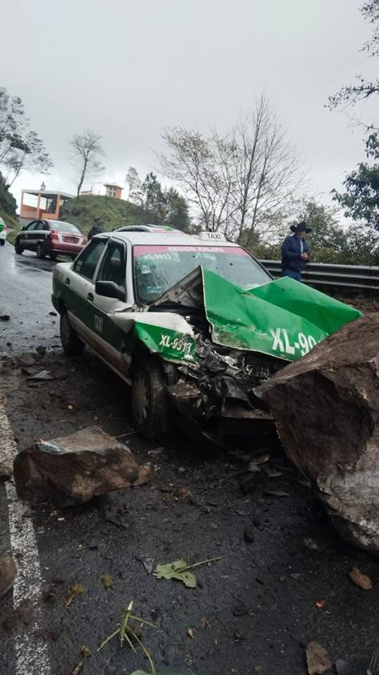Misantla, Ver.- El conductor de un taxi de Xalapa y sus pasajeros salvaron sus vidas, luego de que el vehículo se estrelló contra una roca de gran tamaño localizada sobre la carretera estatal Xalapa – Misantla a la altura del lugar conocido como El Mirador.