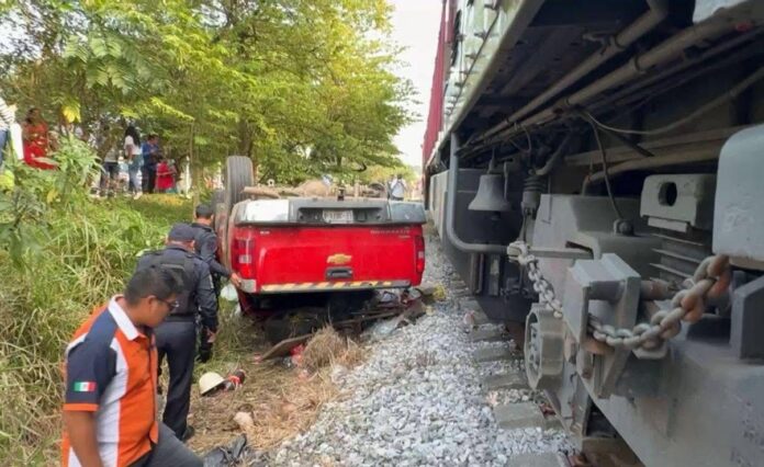 Cosoleacaque, Ver.- Un total de seis personas resultaron lesionadas cuando el conductor de una camioneta intentó ganar el paso al tren, durante la tarde del miércoles, a la altura de la colonia Patria Libre en la cabecera municipal.