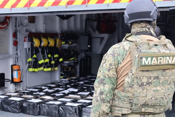 En el marco de las acciones permanentes para mantener el Estado de derecho, la Secretaría de Marina a través de la Armada de México en funciones de Guardia Costera, informa que, durante operaciones de vigilancia y seguridad marítima, se logró el aseguramiento de aproximadamente 188 bultos que representan varias toneladas de presunta cocaína, en espera de que las autoridades competentes determinen el peso ministerial.