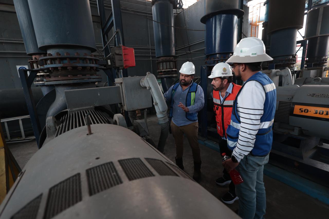 Durante el recorrido por las instalaciones, personal técnico especializado verificó las labores que se desarrollan actualmente, entre ellas la rehabilitación de uno de los reactores aeróbicos, lo que permitirá fortalecer la capacidad operativa y la eficiencia.
