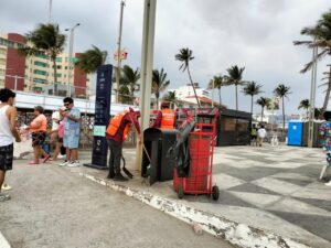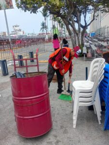 Para cumplir con la encomienda, las cuadrillas de Limpia Pública se encuentran laborando en tres turnos, cubriendo las 24 horas del día, incluso horas extras en el turno nocturno, de 9 de la noche a 5 de la mañana, como parte del operativo especial de limpieza durante el Carnaval de Veracruz 2026, independiente del trabajo diario de recolección normal en toda la ciudad.