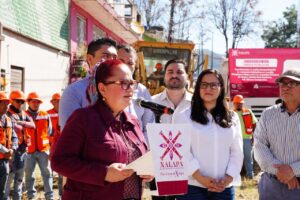 Xalapa, Ver., 18 de febrero de 2026.- Como parte del Programa General de Inversión Pública y de los 100 días de resultados, el Ayuntamiento de Xalapa, encabezado por la Lic. Daniela Griego Ceballos, a través de la Dirección de Obras Públicas, dio el banderazo de inicio a las primeras obras de pavimentación con concreto hidráulico, las cuales contemplan acciones de alumbrado público.