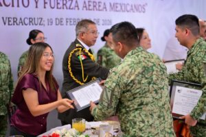 En el acto realizado en la 26ª Zona Militar, ubicada en la localidad de El Lencero, municipio de Emiliano Zapata, las y los presentes rindieron homenaje póstumo a un integrante de la institución y destacaron la labor del personal femenino del Hospital Militar de Zona y de elementos que dieron muestra de lealtad y patriotismo en la aplicación del Plan DN-III-E en Veracruz.