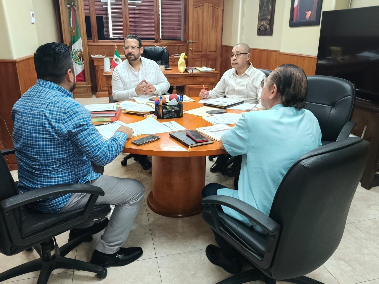 Estas reuniones se desarrollan en el marco de la política estatal orientada al bienestar de las y los trabajadores al servicio público, impulsada por la gobernadora Rocío Nahle García, mediante el fortalecimiento de la seguridad social y la coordinación con gobiernos municipales.