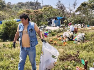 También, el fin de semana se dio continuidad a estos trabajos, acopiando entre 75 y 90 kilogramos adicionales de residuos, así como el saneamiento de aproximadamente 100 tumbas más.