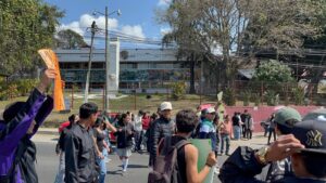 La protesta se originó después de que el secretario de Gobierno, Ricardo Ahued Bardahuil, indicara a los estudiantes que el gobierno estatal no cuenta con recursos destinados a este tipo de apoyos.
