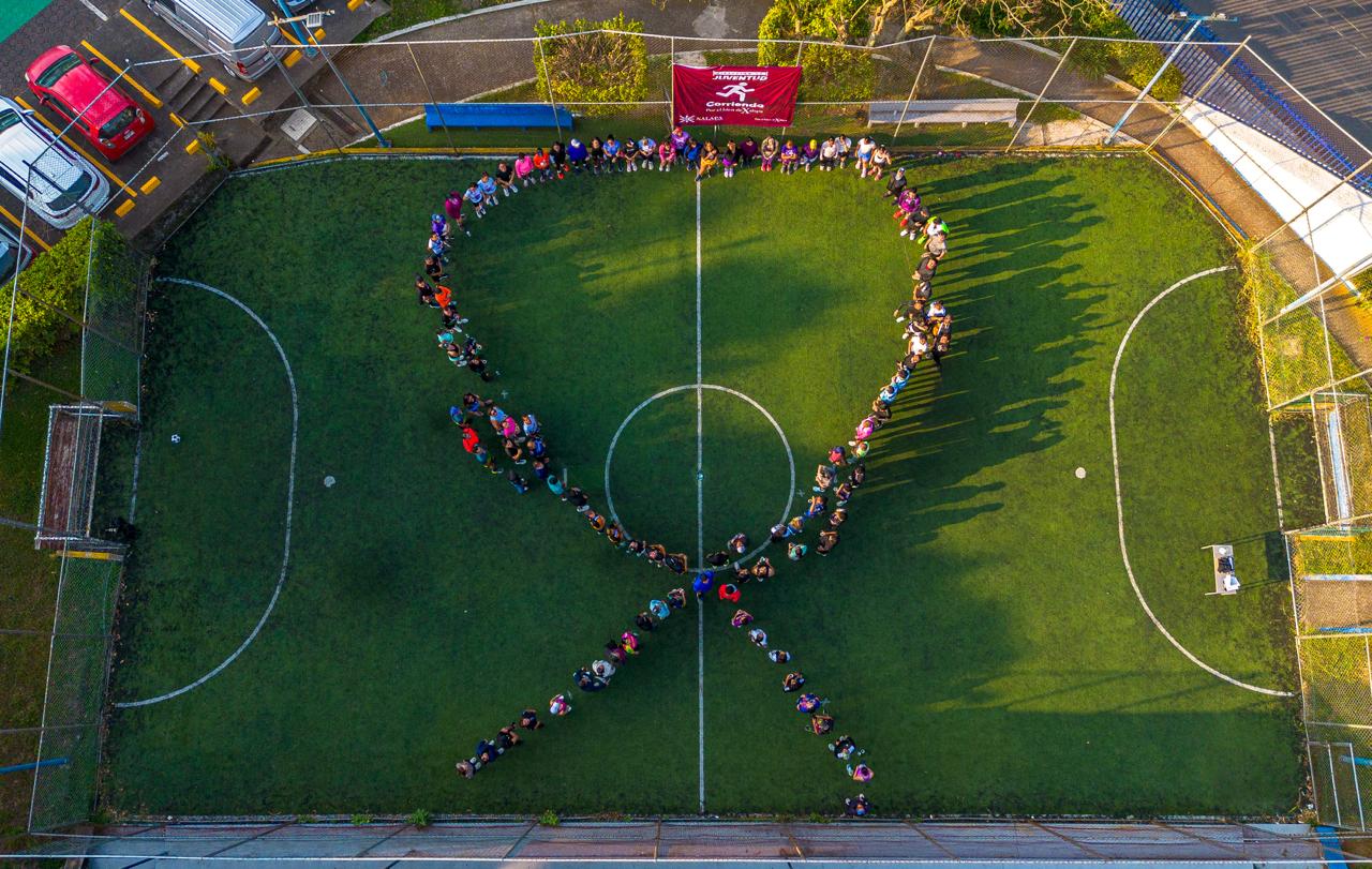 Como distintivo de esta edición, se vistió una prenda color morado, además, la Dirección de Juventud entregó lazos del mismo tono como muestra de solidaridad y sensibilización al movimiento de las mujeres.