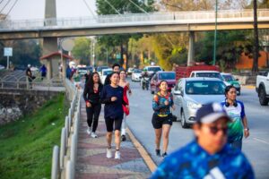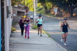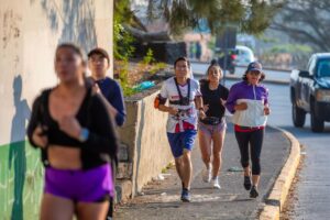Posteriormente, se realizó un calentamiento a cargo de una entrenadora profesional, tras lo cual inició la ruta de 5 kilómetros, con salida y meta en el estacionamiento de la Universidad Hernán Cortés, recorriendo Circuito Presidentes hacia el puente Juventud.
