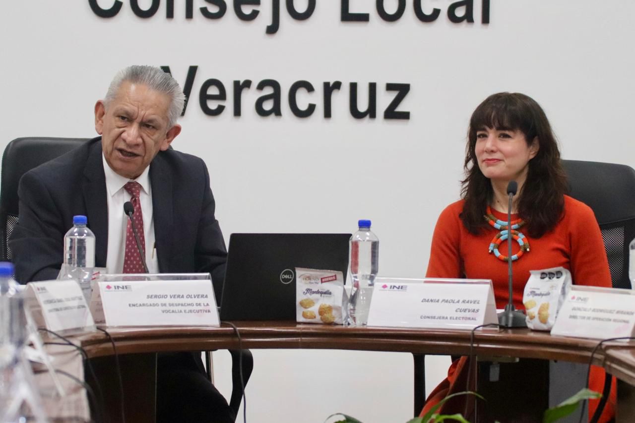 En su mensaje de bienvenida, el Consejero Presidente del Consejo Local del INE en Veracruz, Sergio Vera Olvera, destacó el trabajo que realiza el Instituto, a través de sus órganos centrales y desconcentrados, para garantizar que cada una de las etapas del proceso electoral se desarrolle con apego a los principios rectores de la función electoral: certeza, legalidad, independencia, imparcialidad, máxima publicidad, objetividad y paridad.