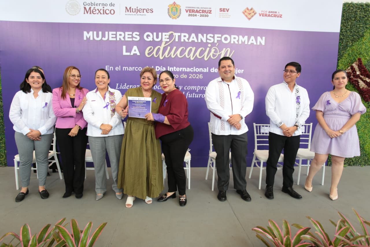 Xalapa, Ver., martes 10 de marzo de 2026.- La Secretaría de Educación de Veracruz (SEV) reconoció a 34 trabajadoras que han contribuido con su labor diaria al fortalecimiento del sistema educativo en la entidad, en beneficio de niñas, niños y jóvenes, en el marco del Día Internacional de la Mujer.