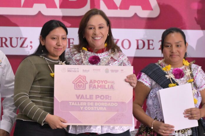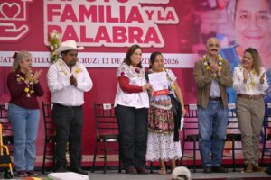 Ixhuatlancillo, Ver., jueves 12 de marzo de 2026.- “Esto representa mucho más que un material; representa tranquilidad para nuestras familias. Gracias por mirar hacia nuestras comunidades y por demostrar con hechos que no estamos solos”, expresó Victoria Flores Valdez al recibir de manos de la gobernadora Rocío Nahle García la orden de pago con la que impulsará su negocio de elaboración de vestidos tradicionales.