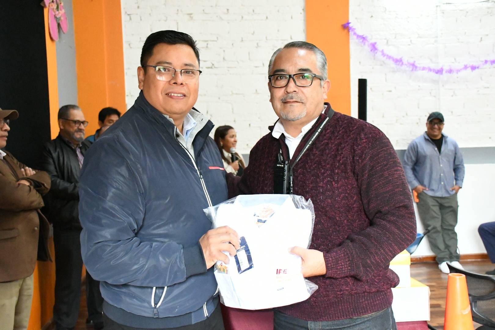 Durante la entrega estuvo acompañado por el Subdirector de Finanzas, Edgardo Escobar Pozo; el Subdirector Jurídico,  José Luis Soto Benítez; el Subdirector de Prestaciones Institucionales, Efrén Jiménez Rojas; y el Subdirector Administrativo, Ángel Pérez Silva, así como por el Jefe del Departamento de Servicios Generales, Alfredo Nape Teoba; la maestra Adriana Esperanza Hernández Avilés, Jefa del Departamento de Adquisiciones e Inventarios y la Coordinadora Administrativa de la Estancia Garnica, Ross Grissette Morales Segura.
