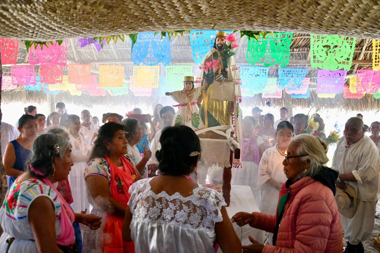 Esta ceremonia se lleva a cabo en el Kantiyán, con la participación de la comunidad del Centro de las Artes Indígenas, habitantes de El Tajín y visitantes que se suman a esta celebración. Abuelas y abuelos, junto con maestras, maestros, alumnas y alumnos, acompañaron a su santo patrono, San José, a lo largo de este significativo trayecto.