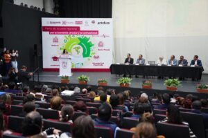 Expuso que frente al modelo económico neoliberal que ha generado altos costos sociales y ambientales, la economía circular plantea una nueva relación entre economía y naturaleza, así como la transformación social a partir de ciclos productivos diferentes, la reutilización de materiales y la reducción de desechos.