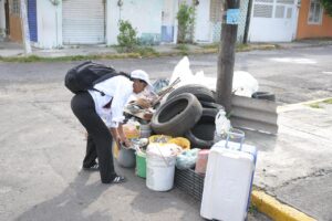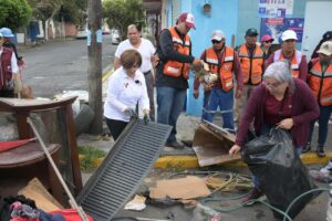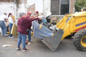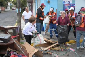 Durante la jornada, vecinas y vecinos participaron de manera entusiasta al retirar de sus hogares muebles, llantas y diversos objetos en desuso, en un ambiente de colaboración en el que la presidenta municipal estuvo presente, acompañando los trabajos en territorio.