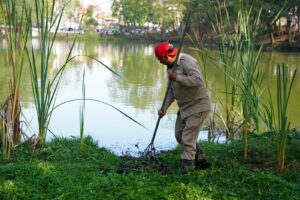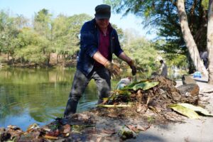 En coordinación con la Comisión Municipal de Agua Potable y Saneamiento (CMAS), una cuadrilla llevó a cabo trabajos de limpieza directa de la laguna y desazolve de canales.