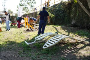 Como parte de la logística del tequio, se realizaron actividades de recolección de basura, barrido general, chapeo, repintado de bancas y desazolve de canales, además de intervenciones específicas en distintos puntos de la zona.