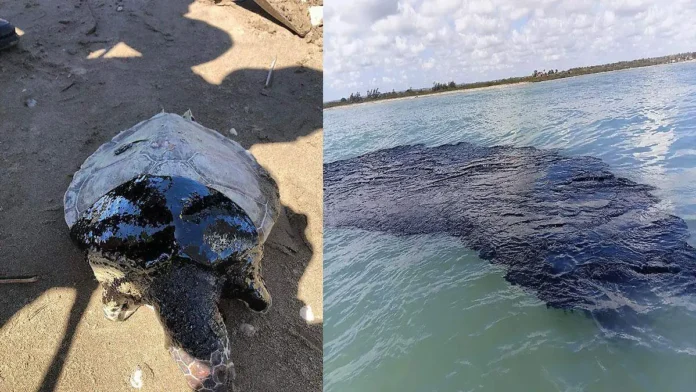 En el municipio de Cazones de Herrera, en el norte del estado, las autoridades municipales informaron de la llegada de chapopote a sus costas, y entre las imágenes difundidas por el ayuntamiento se observa una tortuga muerta cubierta de petróleo crudo.