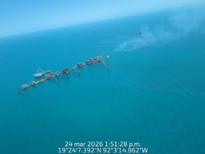 De manera paralela, se mantiene una investigación técnica y científica para determinar el origen del hidrocarburo detectado, a través de imágenes satelitales, desplazamiento de buques en el área con apoyo de drones y de sobrevuelos con aeronaves de la Armada de México.