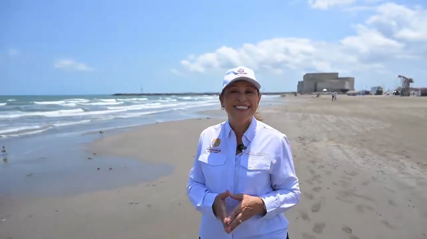“Estamos limpiando nuestras playas en Veracruz, trazas de hidrocarburos, trazas de hidrocarburos en algunos sitios, señaló la Gobernadora Rocío Nahle durante un recorrido en playas de Santa Ana.