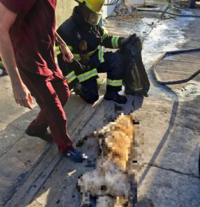 Personal de la dirección de Salud y Protección Animal, en coordinación con la dirección de Protección Civil y el Heroico Cuerpo de Bomberos, se trasladaron al sitio a atender el reporte hecho en redes sociales por vecinos que denunciaban la omisión de cuidados hacia el perro de raza Husky, mismo que, al ser revisado ya no presentaba signos vitales.
