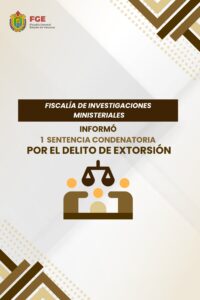 Asimismo, la Fiscalía de Investigaciones Ministeriales informó sobre una sentencia condenatoria por el delito de extorsión.