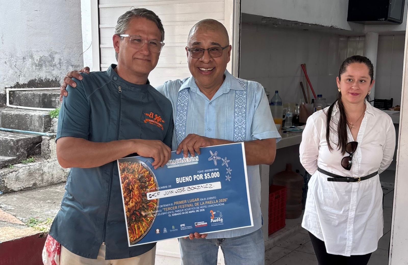 “Entrego este primer lugar a Juan José González por su participación en el Tercer Festival de la Paella 2026 que se celebró en el Parque Acuático del Hotel Chachalacas, muchas felicidades”, dijo el director Luis Octavio Hernández Lara, al entregar el premio al ganador.