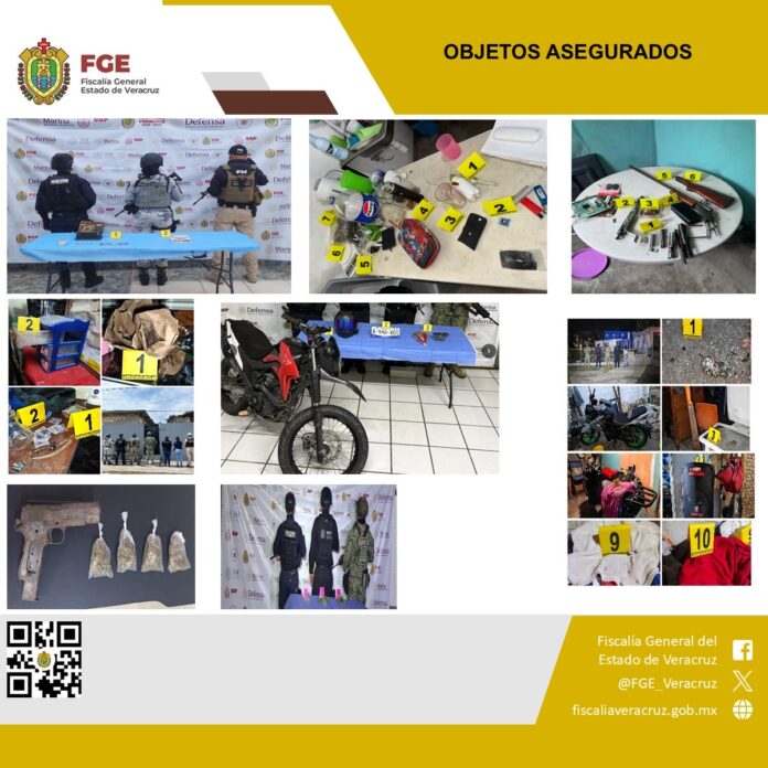 Xalapa, Ver., 6 de abril de 2026.- En el marco de una estrategia operativa orientada a fortalecer la paz social, durante el periodo del 30 de marzo al 5 de abril, la Fiscalía General del Estado de Veracruz, a través de sus fiscalías regionales, logró la detención en flagrancia de 33 personas presuntamente vinculadas a actividades ilícitas, durante la ejecución de 27 cateos autorizados por la autoridad judicial en 13 municipios.