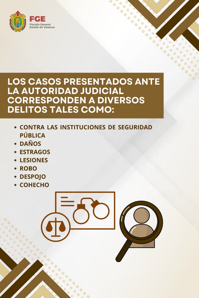 Como resultado del trabajo de investigación ministerial realizado en el periodo comprendido entre el 31 de marzo y el 6 de abril, la Fiscalía General del Estado de Veracruz logró 86 vinculaciones a proceso en contra de presuntos responsables de diversos delitos en las distintas regiones de la entidad.