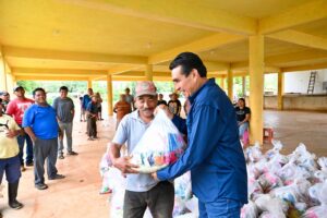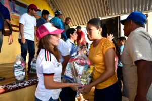 •  representación de la gobernadora Rocío Nahle García, la diputada Naomi Edith Gómez y el diputado Esteban Bautista encabezan la distribución de dos mil despensas en Pajapan, Tatahuicapan y Mecayapan.