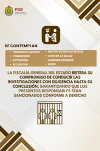 La Fiscalía General del Estado reitera su compromiso de conducir las investigaciones con diligencia hasta su conclusión, garantizando que los presuntos responsables sean sancionados conforme a derecho.