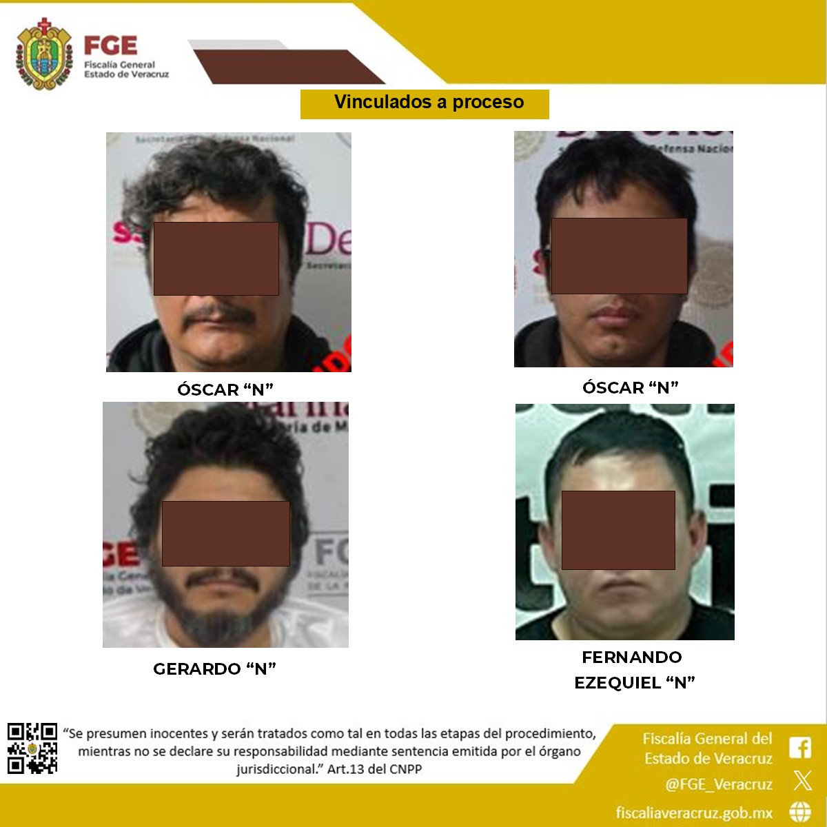Xalapa, Ver., 16 de abril de 2026.- Como resultado del trabajo de investigación especializado, durante el periodo comprendido del 9 al 15 de abril, la Fiscalía General del Estado de Veracruz, a través de la Unidad Especializada en Combate al Secuestro y la Extorsión (UECS) logra vinculaciones a proceso que refuerzan el combate al delito de secuestro.