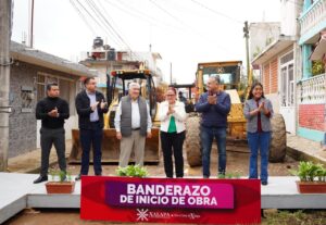 Previamente, la Alcaldesa visitó la colonia Constituyentes, donde dio el banderazo de inicio a la pavimentación con concreto hidráulico de 676 metros cuadrados de superficie en la calle Fernando Z. Mercado, obra que también incluye guarniciones, banquetas, alumbrado público, rampas, áreas jardinadas y guías podotáctiles.